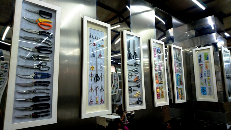 Tempat makan Steak Gunting lumayan nyaman. Ada sofa berbantal yang bisa dibuat gogoleran sama anak-anak sambil menunggu pesanan sampai. Lokasi resto terletak di kawasan ruko yang kanan kiri depan belakang-nya juga tempat makan semua. Tinggal pilih yang sesuai selera dan harga. Seperti namanya, Steak Gunting dimakan menggunakan gunting. Gunting disediakan menggantikan pisau bersama dengan garpu. Gunting memang jadi tema utama resto ini. Berbagai macam jenis, model, dan bentuk gunting dipajang jadi hiasan di dinding resto.