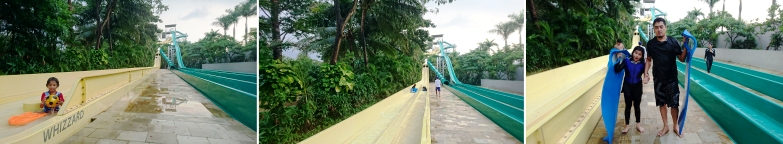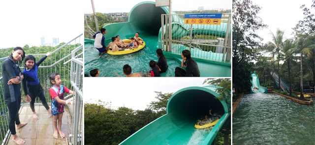 Permainan lain yang menyenangkan adalah di bawah ini. Soalnya bisa meluncur bareng dalam satu ban besar bersama keluarga. Pas banget satu ban memuat 4 orang. Kalau yang ini Keano juga ketagihan. Seruuuu.. dan kami berulang kali naik turun untuk berseluncur.