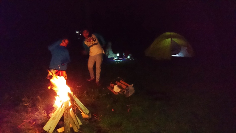 Sempat makan malam dulu di Ampera Batujajar, akhirnya kami sampai di Ranca Upas sekitar jam setengah sepuluh malam. Masuk Ranca Upas yang pintu gerbangnya sudah ditinggal kosong sama penjaganya. Sempat agak bingung nyari lokasi parkir dan bangun tenda. Hampir sekitar 10 menit kabut turun dengan tebalnya, dan dari dalam mobil bener-bener gak bisa lihat jalanan. Meraba-raba jalan, akhirnya berhenti dulu di tempat yang kelihatan ada lampu mobil lagi parkir. Pas kabut hilang, ternyata ini di lapangan, dan parkir jejeran sama mobil, truk dan tenda tentara yang lagi mau latihan.