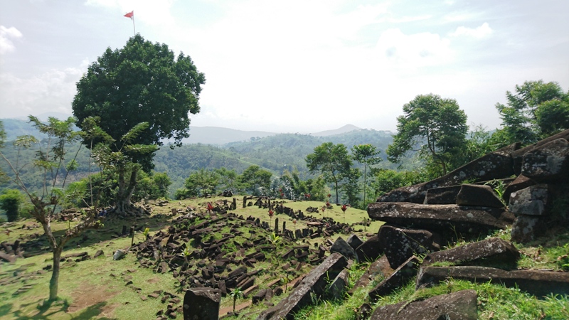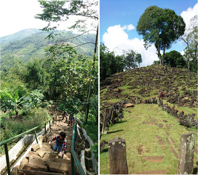 Di Gunung Padang, Lana dan Keano lumayan semangat di awal-awal. Kuat melahap ratusan anak tangga untuk sampai ke puncak. Tapi agak kurang happy dan bingung pas sampai di atas. Sambil istirahat, kami duduk-duduk di bawah pohon besar menikmati pemandangan dan balok-balok batu yang berserakan. Jalan dan duduk-duduk lagi di gardu pandang. Sempat mau muter lagi lihat-lihat situs, sampai akhirnya Keano mulai kelihatan males. Dan berakhir dengan pertanyaan “Pah, ngapain kita ke sini?”