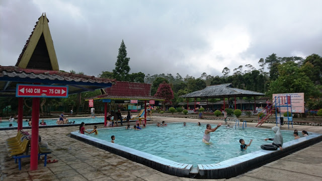 Sampai di Ciwidey Valley, ternyata kata petugas di pintu masuk, kolam air panasnya belum siap. Airnya lagi gak panas. Males dingin-dinginan di tempat yang sudah dingin, akhirnya kami cuma main di playground dan tengak tengok saja di Ciwidey Valley. Untuk renang atau main air panasnya, geser ke Ciwalini. Selesai renang, sebelum maghrib balik ke tenda, lalu bikin api unggun.