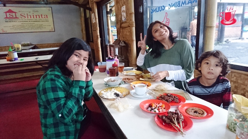 Diiringi dingin, hujan kecil, dan godaan kuliner sepanjang jalur Puncak, keputusan buat makan kayaknya bukan persoalan sulit. Sate kambing tetep jadi incaran. Tapi karena sudah khatam dengan Sate Kadir –dari Kadir 1 sampai 6– nyate kambingnya kali ini cari yang lain. Masih legend juga, Sate Shinta di Cipanas jadi pilihan. Pas, enak, lezat.