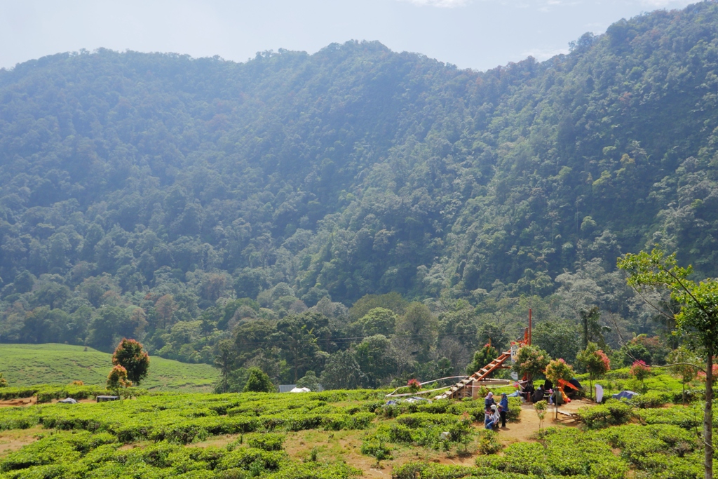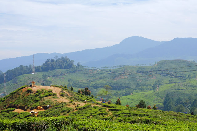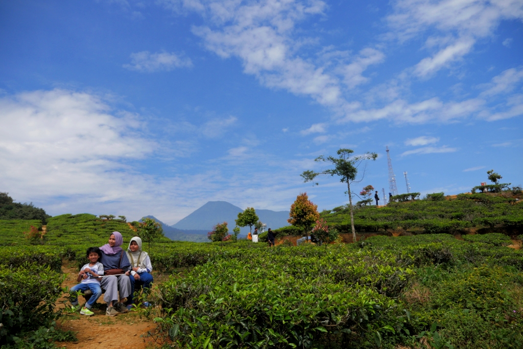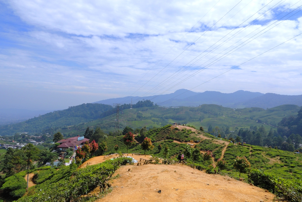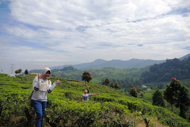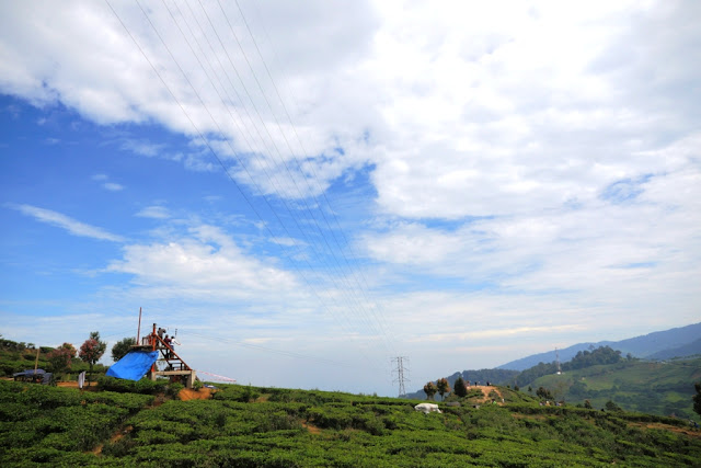 Tea walk “mini” atau jalan kaki santai menyusuri perkebunan teh, emang selalu menyenangkan. Udara sejuk dipadu dua lapisan warna yang dominan –hijaunya kebun teh di bawah, dan biru langit di atas– bisa bikin mata jadi lebih seger.