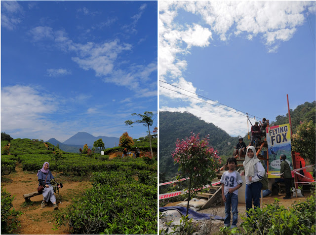 Sampai atas, bener juga ada flying fox lagi. Tempatnya memang lebih tinggi, tapi lintasan flying foxnya gak seekstreem yang dibayangkan suami. Jadilah kita nonton aja, sambil keliling puncak bukit, menikmati pemandangan dari atas. Dari sini puncak pass keliatan, begitu juga kota Bogor dari ketinggian.