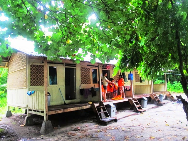 Di pulau Kiluan atau biasa disebut juga pulau Kelapa, hanya ada satu penginapan. Ada dua bagian sebenarnya, sama satu lagi yang di atas rumah penjaga pulau atau pengelola penginapan, plus warungnya. Dua-duanya adalah bangunan sederhana terbuat dari kayu. Tadinya kami diarahkan ke kamar di lantai dua rumah panggung di atas warung itu. Tapi karena eyang susah naik turun tangganya, dan juga takut anak-anak pecicilan jatuh dari rumah panggung, akhirnya kami pindah dan memilih kamar lain di bagian depan yang kebetulan sedang kosong. Lebih enak di sini malah. Listrik di pulau hanya menyala dari maghrib sampai jam lima pagi. Fasilitas yang ada juga sederhana, hanya ada kipas angin, kasur digelar di lantai beserta guling dan bantalnya. Kamar mandi di luar, nimba sendiri di sumur dan hanya dibatasi seng. Tapi di situlah seninya, dan anak-anak senang-senang saja.