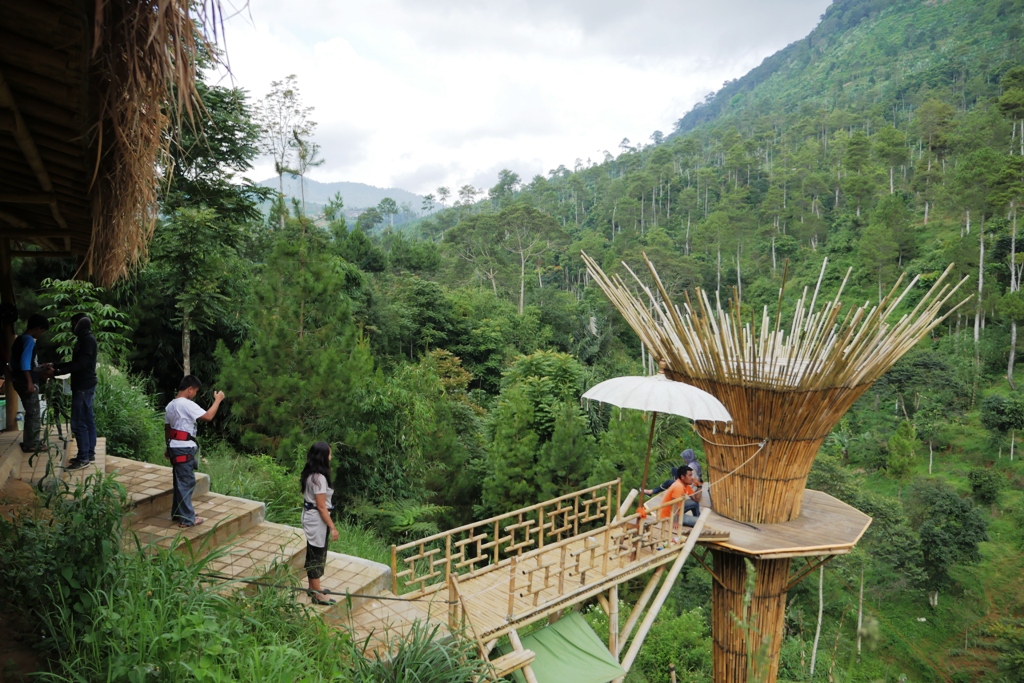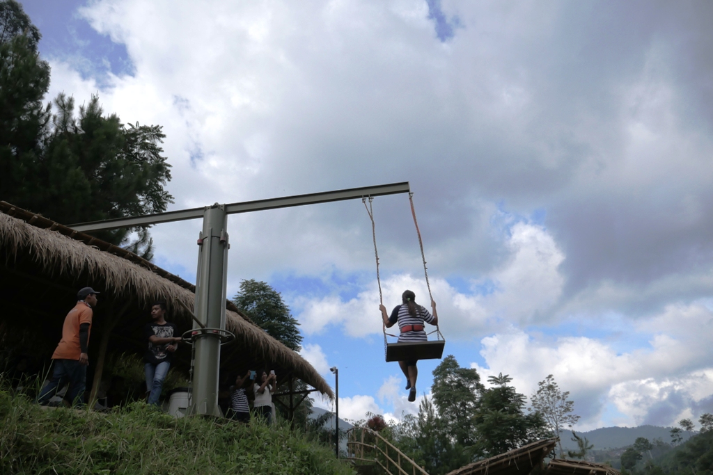 Di The Lodge Maribaya ini, akhirnya saya paham gimana caranya bisa dapat foto orang main ayunan di ketinggian pepohonan hutan. Semua ada teknologinya, dan terus terang saya salut banget sama niatnya menciptakan image berayun ekstrem itu.