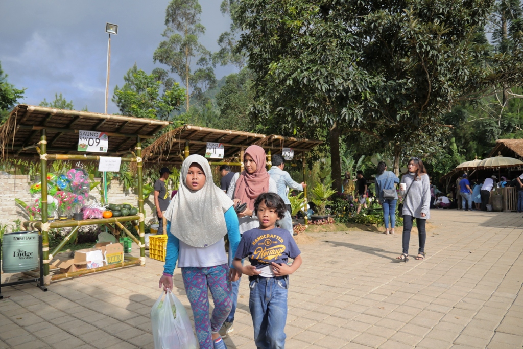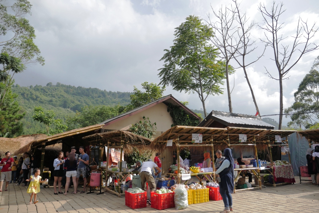 Keluar lokasi, ada pasar dadakan yang menyediakan produk petani lokal. Ini juga bikin seneng karena sayurannya masih seger-seger dan harganya murah. Kalau ke sini, jangan lupa belanja ya. Biar warga setempat juga kebagian rejeki dari banyaknya pengunjung yang menuh-menuhin kampung mereka. Dialokasikanlah budgetnya, jangan habis buat berfoto doang. Peace ah..✌?