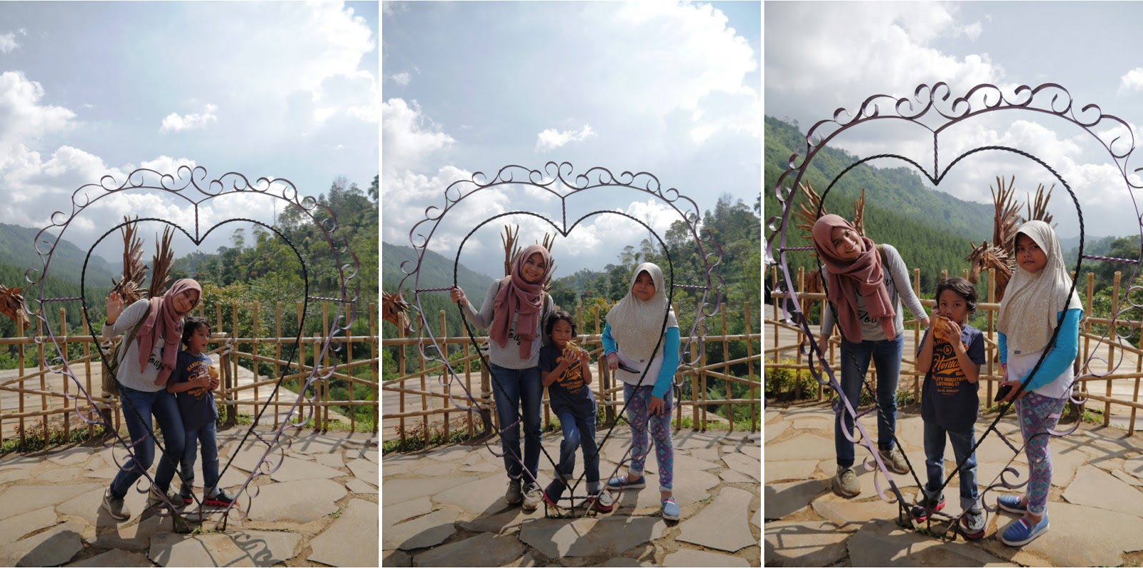 Photospot, memang salah satu daya tarik yang dijual pengelola. Ini daya tarik terbesarnya, saya kira. Sebagian lokasi gratis, kami memanfaatkan yang ini ajah hahaha.. sebagian lain, bayar dong. Paham sih, soalnya di tempat foto berbayar, gak cuma disediakan pemandangan ciamik, tapi juga artificial set. Tukang fotonya juga sudah disediakan, sehingga angle kameranya memang sudah pilihan.