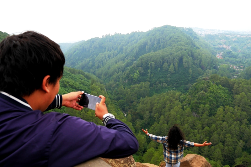 Tebing Keraton dan swafoto alias selfie ibarat saudara kembar. Dua-duanya susah dipisahin, tumbuh dan gede bareng. Gara-gara fenomena selfie juga, si Tebing Keraton di Bandung ini jadi ngehits. Makanya –plus sedikit opini lebay– jalan-jalan ke Tebing Keraton ini, kami seperti ikut menjadi ‘saksi sejarah’ gimana hebohnya si selfie. Buat Lana dan Keano, mungkin nanti pas sudah besar, bisa jadi femomena selfie ini sudah gak ada. Atau mungkin bisa jadi tambah menggila.
